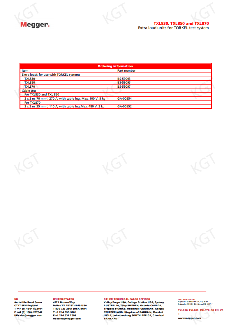 美國Megger TXL830/TXL850/TXL870 TORKEL 蓄電池測試系統的額外負載設備 由愛儀器儀表網代理,它的設計是與 TORKEL 電池負載測試儀一同使用。其用途是在恒定電流或恒定功率測試時提供較高的負載電流。TORKEL 和 TXL 額外負載設備共同組成能夠對高達數千安的電流的蓄電池進行放電的系統。現在熱賣中,如需購買,可通過ai1718.com的客服熱線聯系我們!