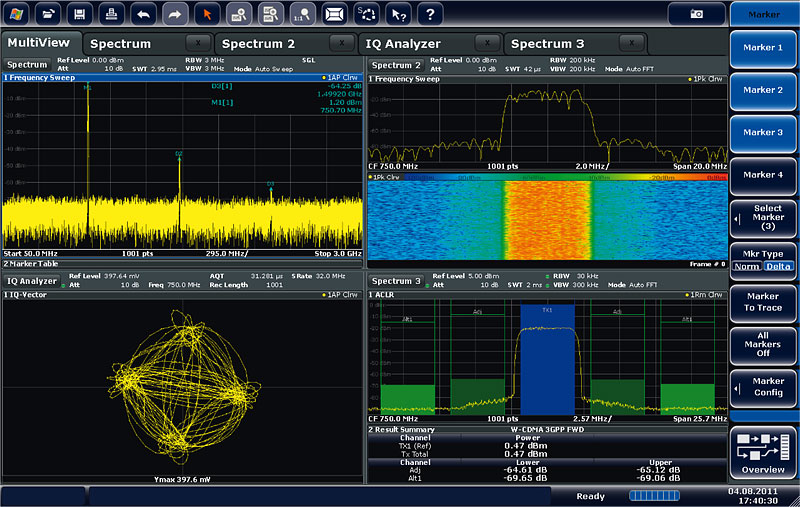 R&S?FSW提供新多標準無線分析儀功能,此功能在FSW的160MHz分析帶寬內(nèi)可以同時測量處于不同頻率點的不同標準信號(比如GSM, WCDMA, LTE信號)
