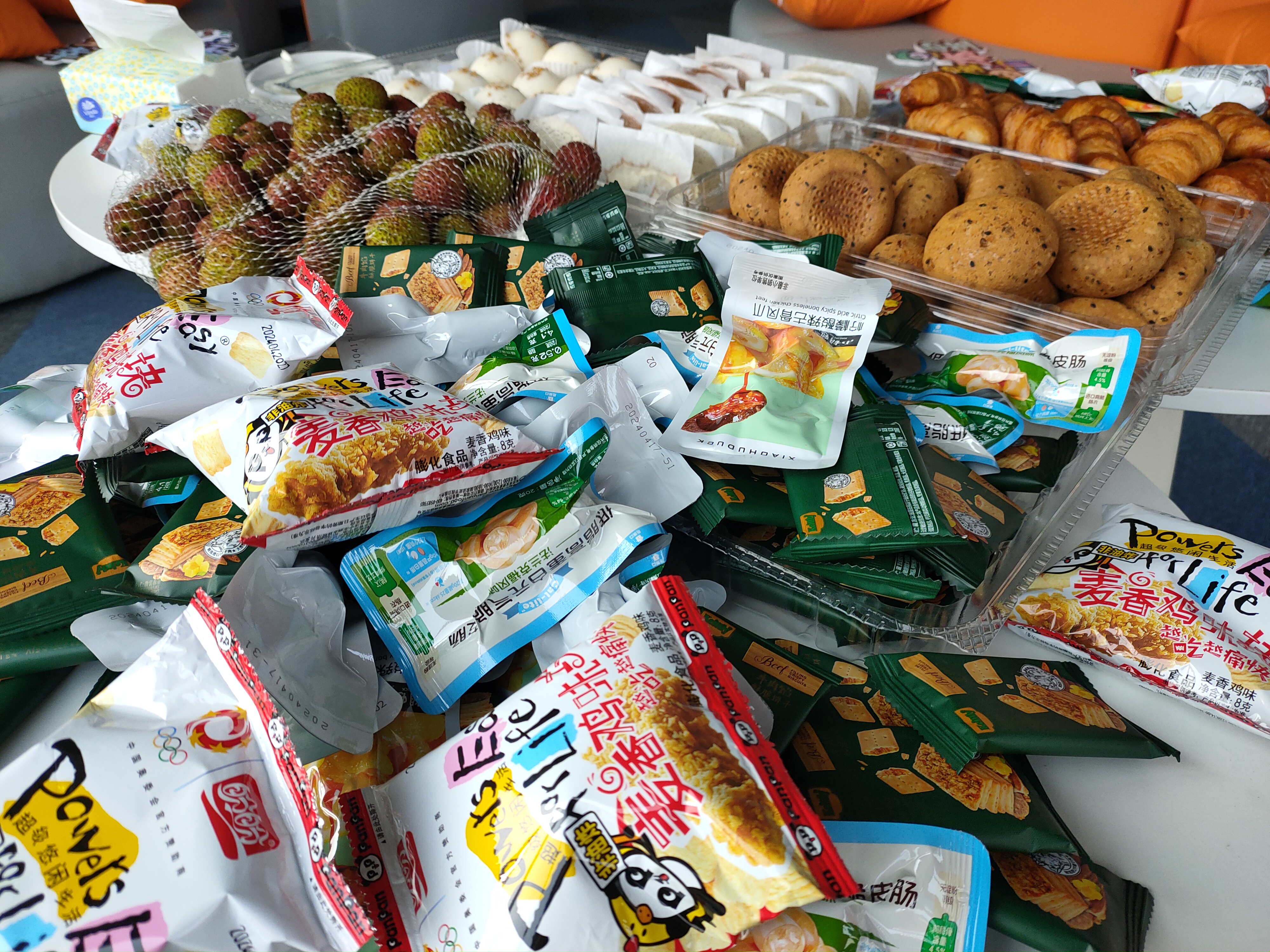 接下來*是大家*期待的美味分享時刻了!清新香甜的生日蛋糕、冰冰涼涼的瑞士卷、飽滿多汁的新鮮荔枝和各種口味的零食……*能夠滿足大家的味蕾,大家在享受美味的時刻交流彼此的心情和感受,又是一場心與心的交流,讓大家感受到集體的溫暖和關懷。