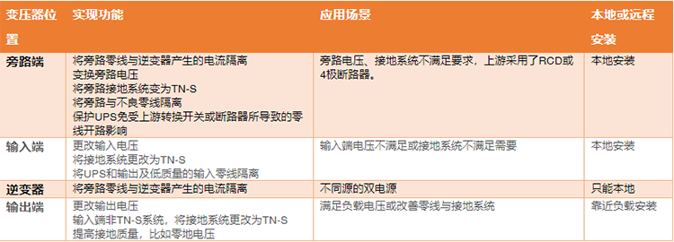 如今,大多數UPS都是無變器設計,在成本、效率和實施方面都有很大的優勢,但許多供配電系統需要變壓器的設計,甚至在國家標準中。所以在特定的場合是必要的。UPS系統中變壓器的功能包括變壓器、消除零線環路和保護各種故障。不同的使用位置可以起到不同的作用。因此,通過分析,我們可以正確理解和設計UPS系統。