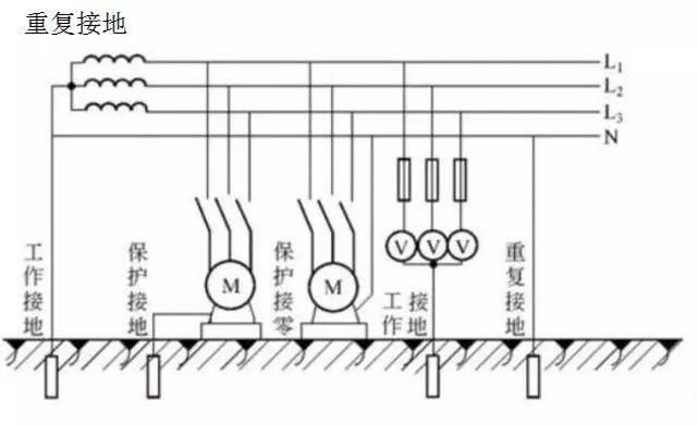 ③中性線必須重復接地,因為當中性線斷開時,接零設備外殼上有220V對地電壓,這是絕對不允許的。